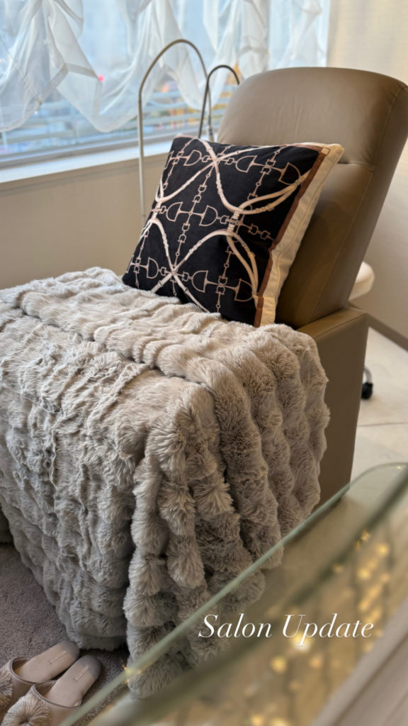 そんな季節の移ろいに合わせて、GRACEでは、お客さまがより心地よく過ごせるよう、冬仕様のサロン空間作りを少しずつ整えております。