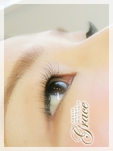 瞼の形状により、長めのエクステンションを装着させていただいておりますが