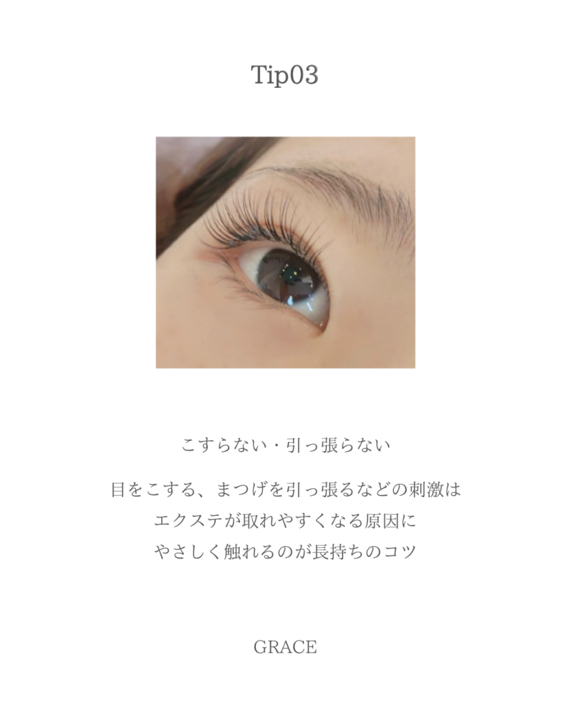 施術後の美しいまつ毛を長持ちさせるため、施術後は次のポイントに注意してください。