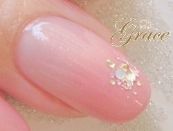 ゴールドとピンクの銀箔を散らし、SS3のミニスワロフスキーを添えて。