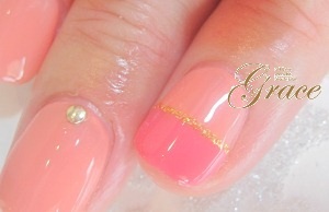 両薬指にポイントのバイカラー「オレンジ×ピンク」