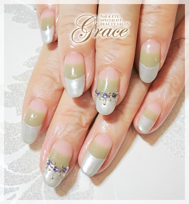 今回はグレイッシュなカーキとシルバーのWフレンチです。