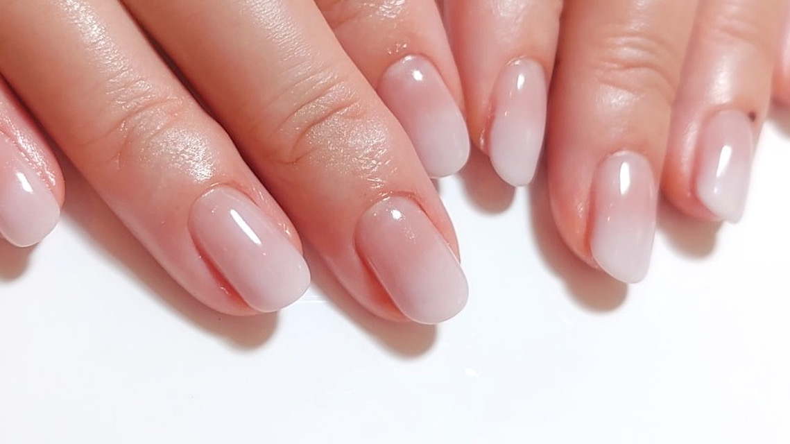このふんわり優しいグラデーションは、ファンデーションを塗るようにスポンジでタップするジェルネイルです。