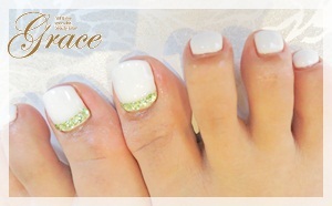 当サロンのオーナー、Yamamotoも現在ホワイトのフットネイルをしています。