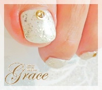真っ白のジェルネイルは意外と合わせやすくGrace一押しのフットデザインです*.・