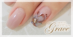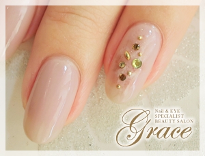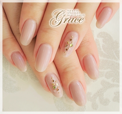 薬指にだけブラウンやカーキのスワロフスキーをのせ