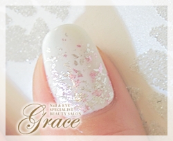ピンクとシルバーの箔を取り入れたネイルです。