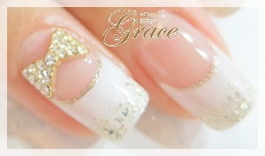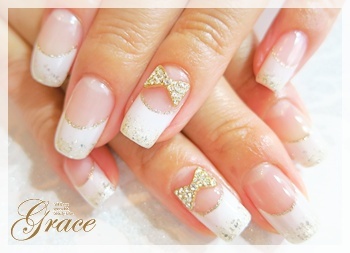 ・フレンチネイル+リボンパーツ