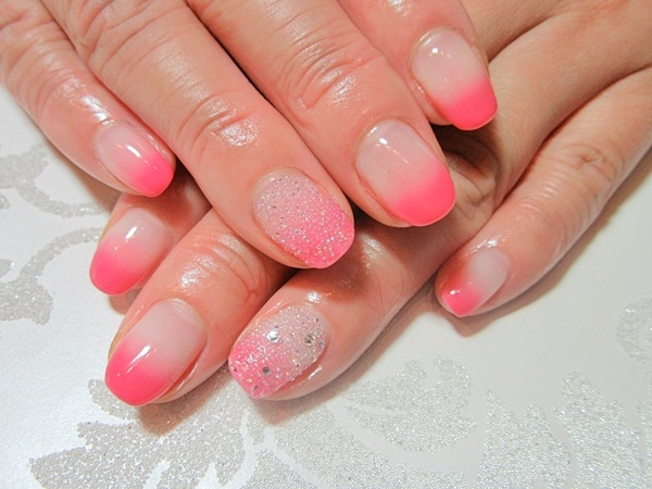 新色の明るいピンクをグラデーションネイルでお試しいただきました。