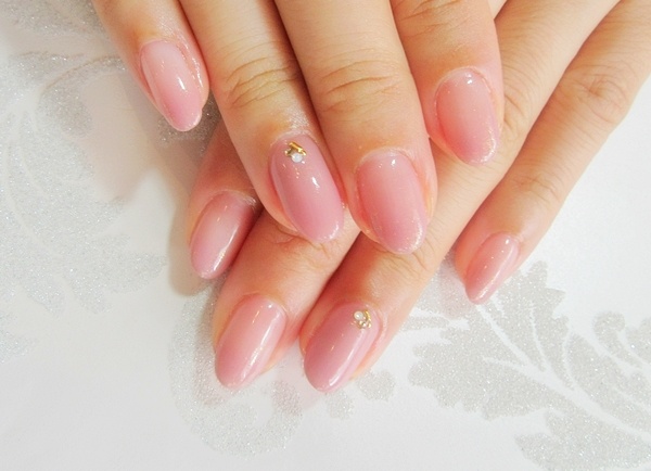 スワロフスキーをのせた薬指はワンカラー(一色塗り)にしています。