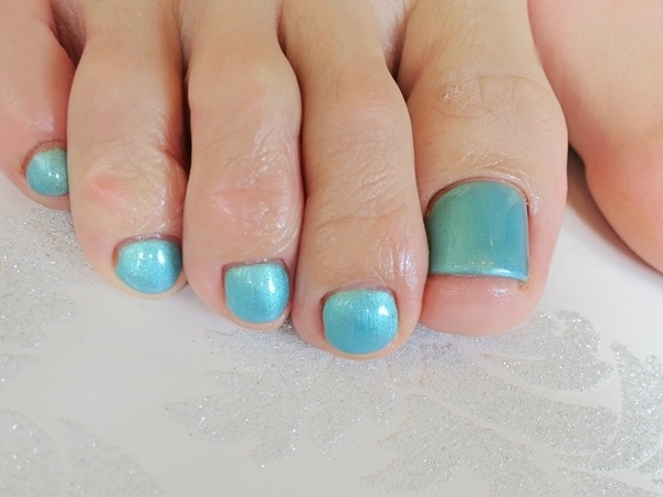ターコイズブルーのシンプルフットジェルネイル。 とても夏らしいカラーですね*・゜
