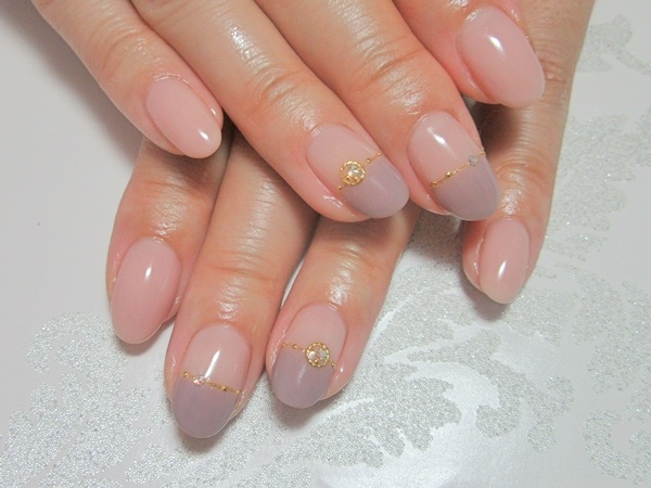 ピンク×グレーのバイカラーフレンチです。