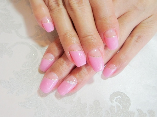 斜めの薄めのピンクが可愛いフレンチネイルです。