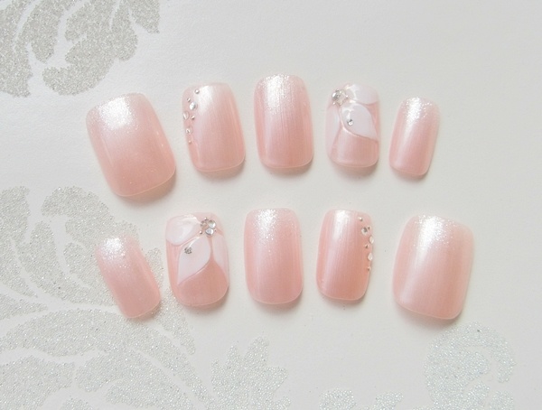 グレースでブライダルネイルに人気の5枚花のエンボスアート。
