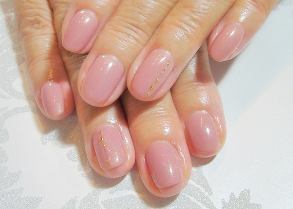 ピンクとゴールドのジェルを2色混ぜたネイルカラーは