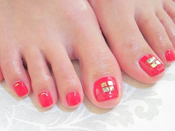 オールシーズン人気のフットジェルネイルカラーの赤です。