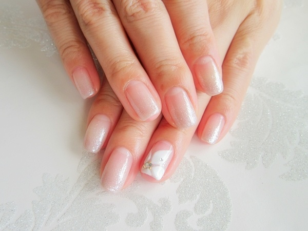 ブライダルネイルにも人気のお花を薬指に施したネイルです!秋の雰囲気をだせるよう、グラデーションのカラーは品のあるグレーです。