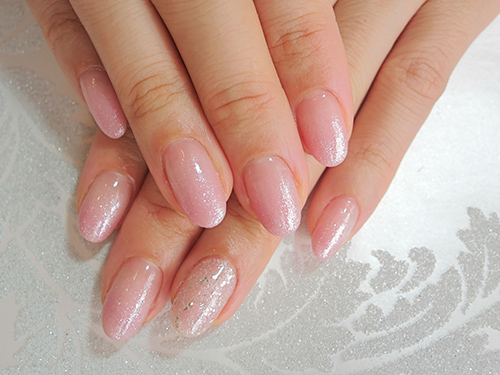 薬指の1本だけラメがポイント。 シンプルグラデーションネイルです。