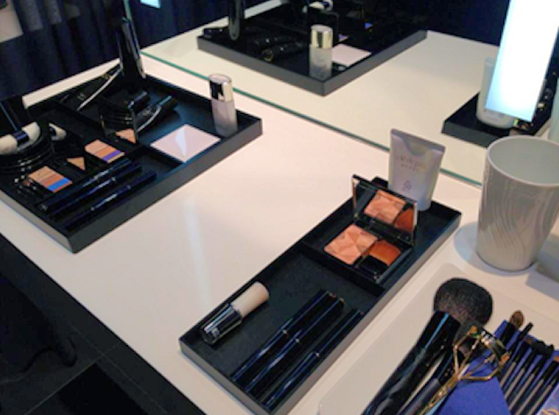 クレドの製品がフルライン揃っているドレッサーを使用して、施術後のメイクを。